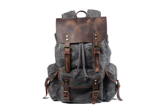 Grey Canvas & Leather Backpack Purse Bag