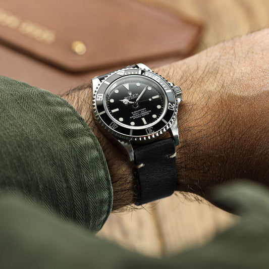 Genuine Horween Chromexcel® V-Stitch Leather Watch Strap - Chromexcel Black