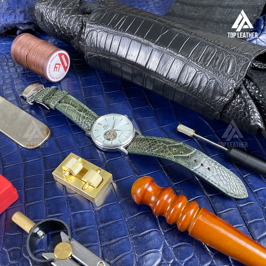Genuine Ostrich Leather Watch Strap Band for Apple Watch, Samsung Galaxy Watch, Mechanical Watch - Green