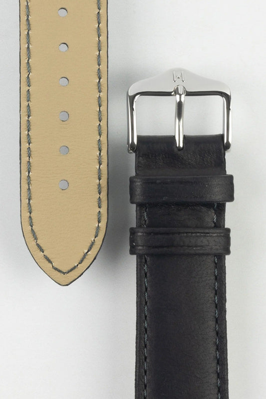 Hirsch HEAVY CALF Water-Resistant Calf Leather Watch Strap in BLACK/WHITE