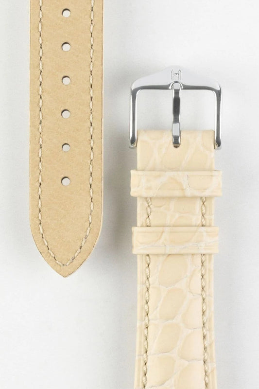 Hirsch ARISTOCRAT Croco-Embossed Leather Watch Strap in BEIGE
