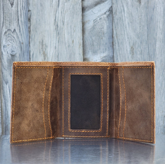 Meraki - Brown Full Grain Leather Trifold Wallet