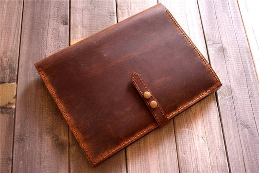 Personalized Distressed Brown Leather iPad Case Sleeve