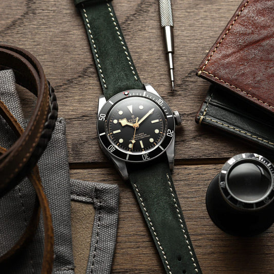 Stanton Conceria Opera Suede Padded Watch Strap - Forest Green