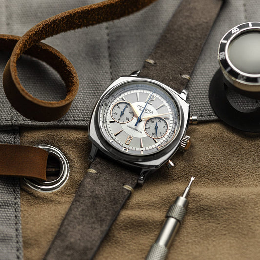 Stanway Vintage V-Stitch Conceria Opera Suede Dress Watch Strap - Grey