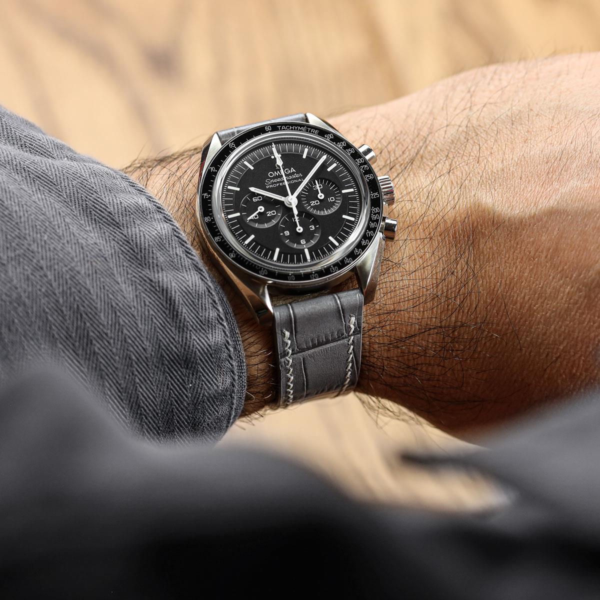 Arhem Handgenähter Uhrenarmband aus Kalbsleder mit Krokoprägung in Grau