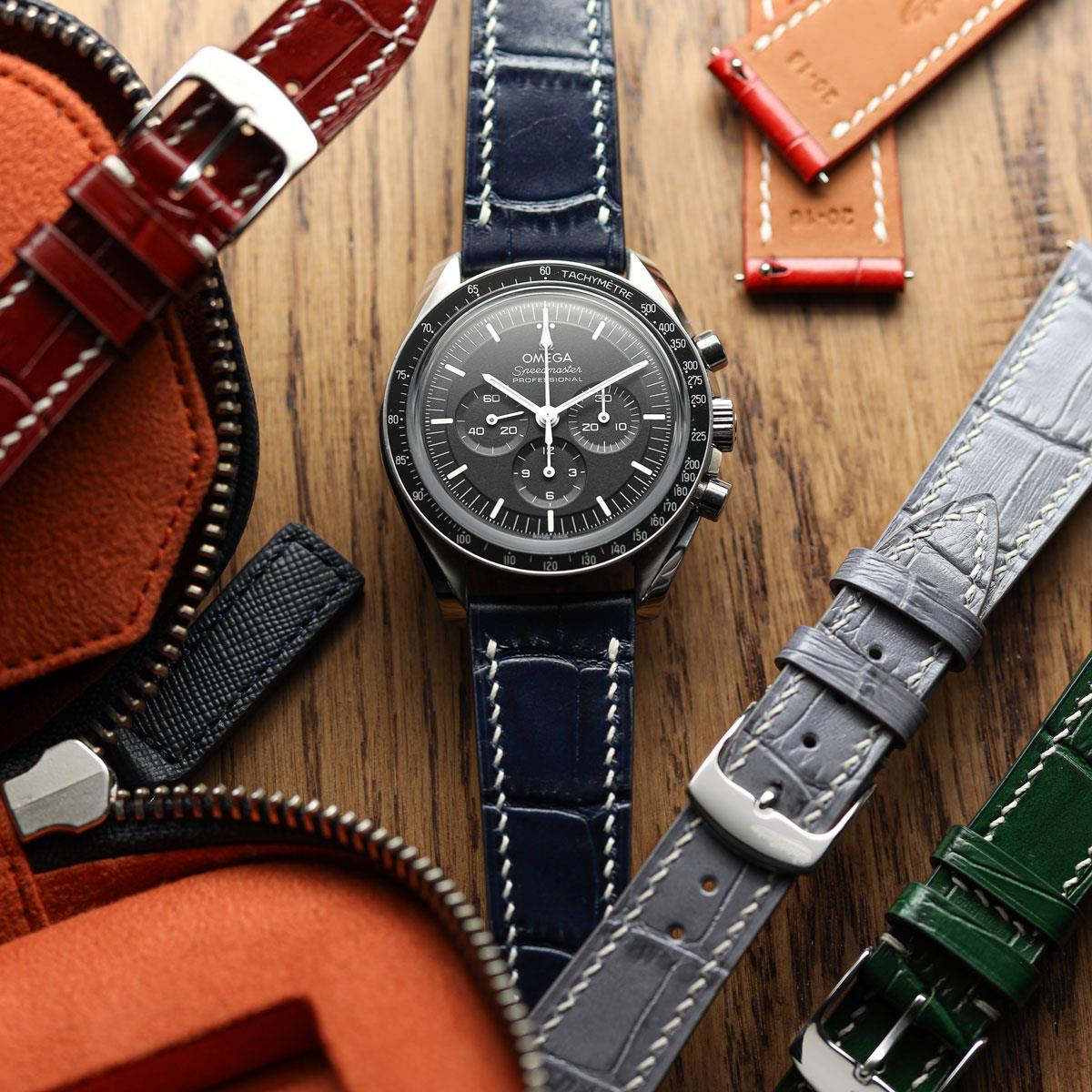 Arnem Handgefertigter Kalbsleder-Uhrenarmband mit Alligator-Design in Navy Blau