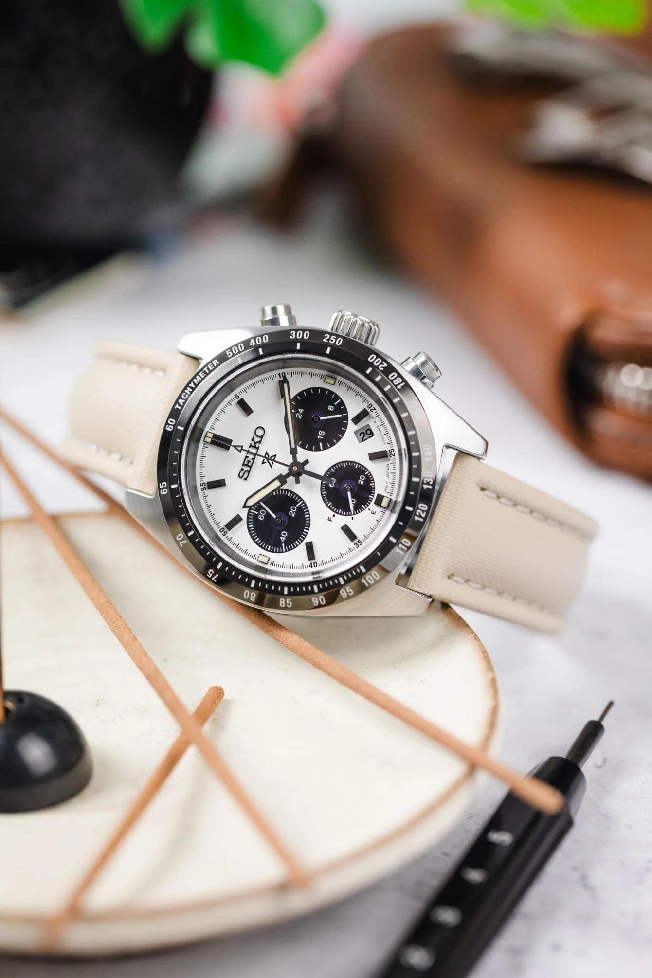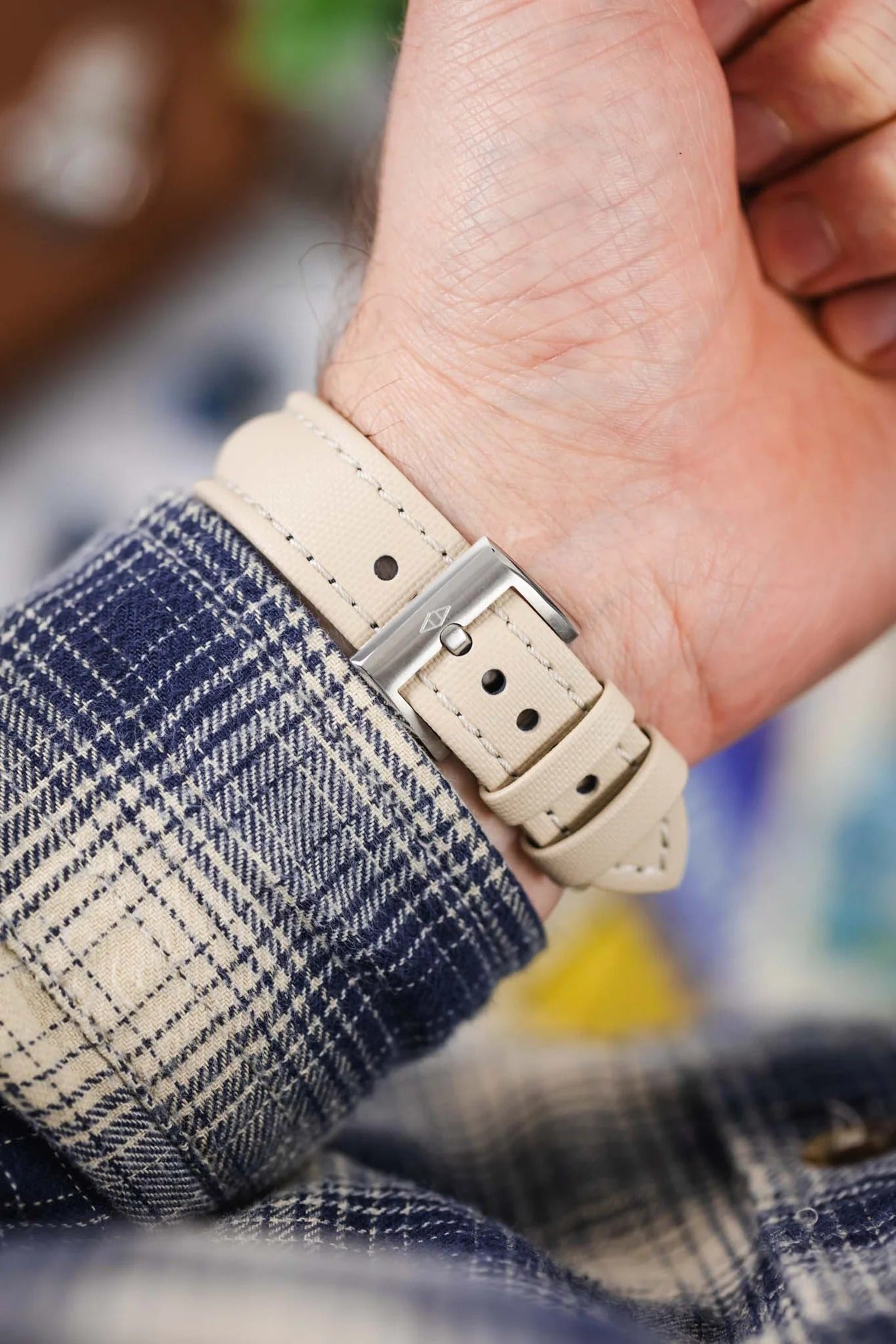 Artem Straps Classic Beige Sailcloth Watch Strap with Beige Stitching