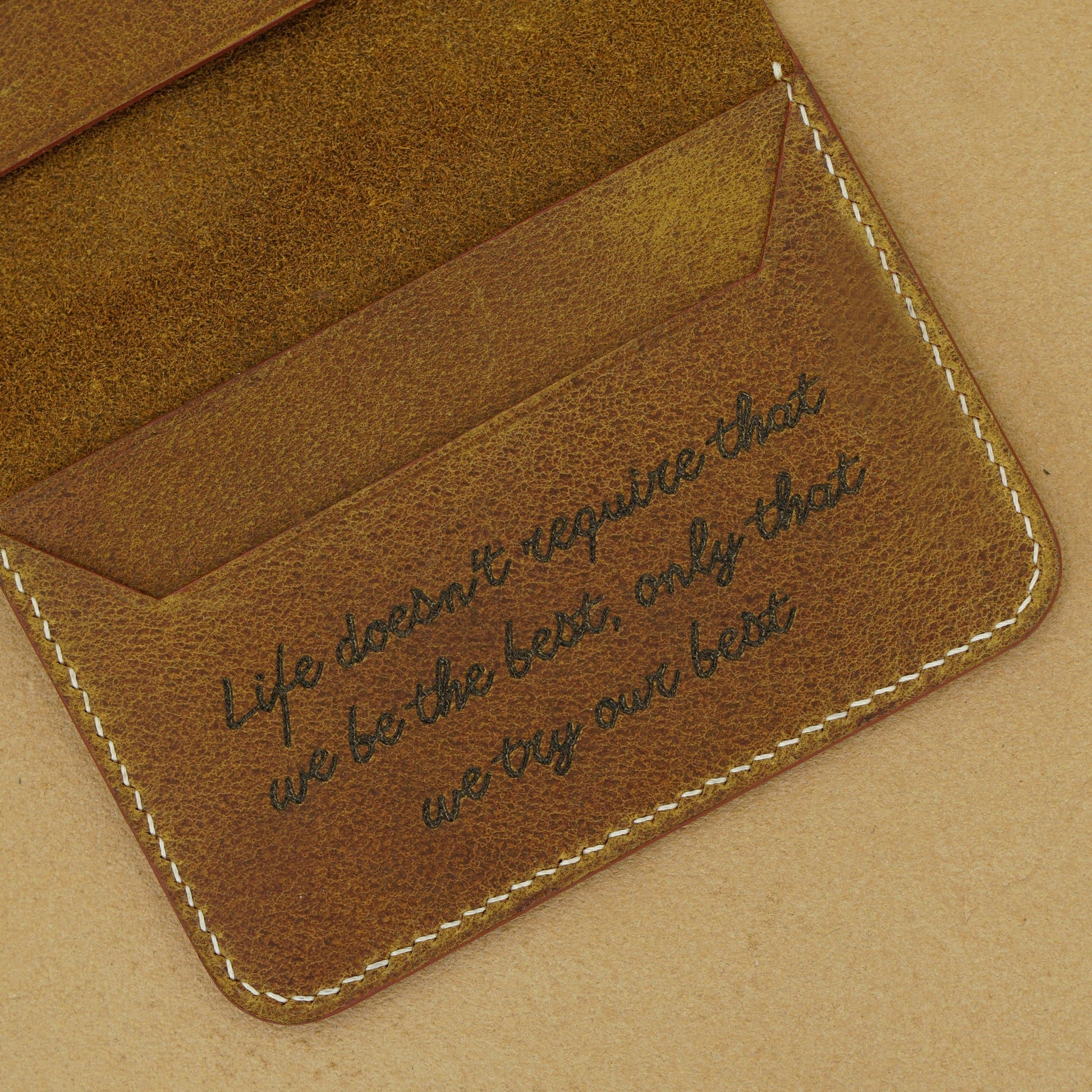- Premium Material:Â Designed with high-quality Waxed Cowhide leather and laser engraved to make this engraved wallet for men, ensuring it will not fade or crack, comfortable and durable.
