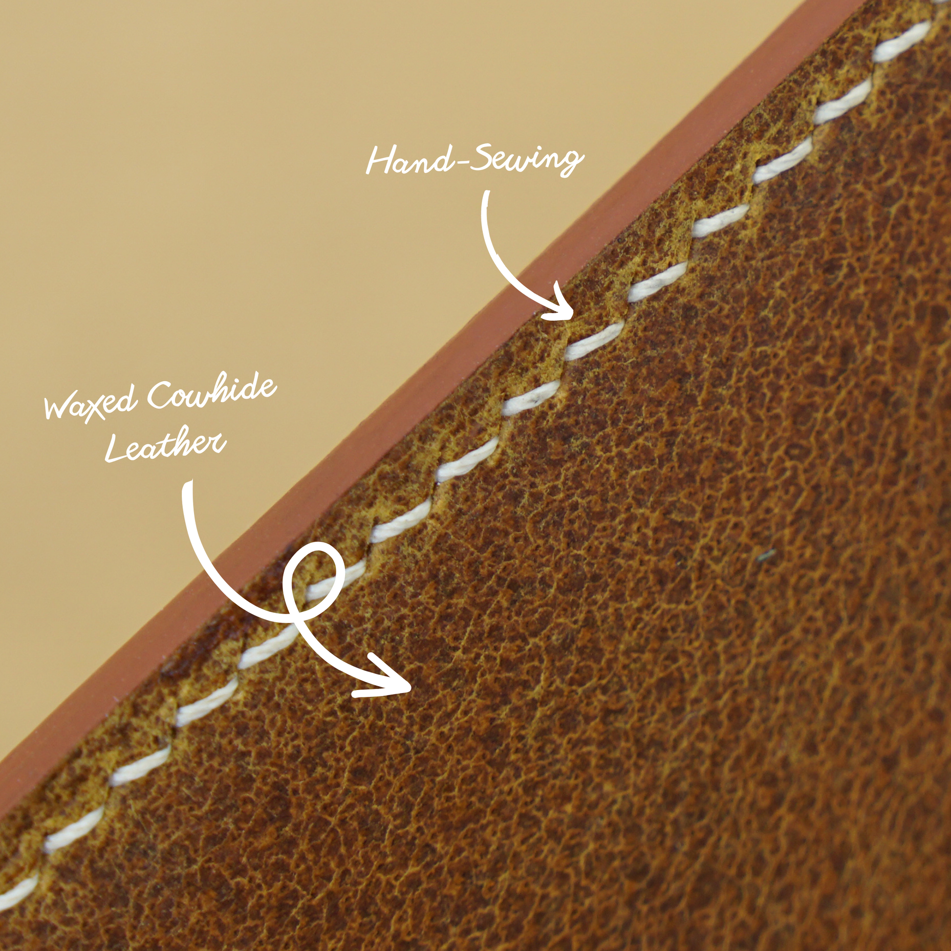 - Respecting age-old techniques and all processes made by hand, we created this item by selecting premium quality Waxed Cowhide Leather, an extremely durable, material that balances luxury with a vintage touch. This wallet brings a good-looking and highly practical product, an accessory you'll be proud to carry!