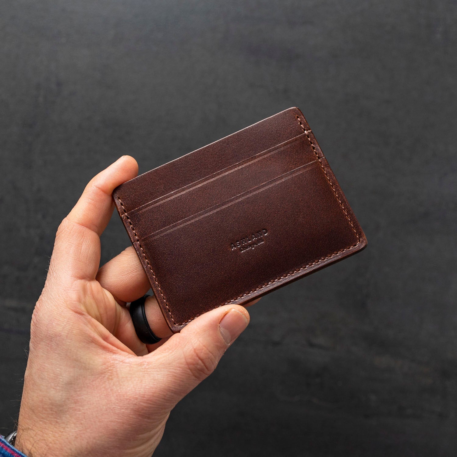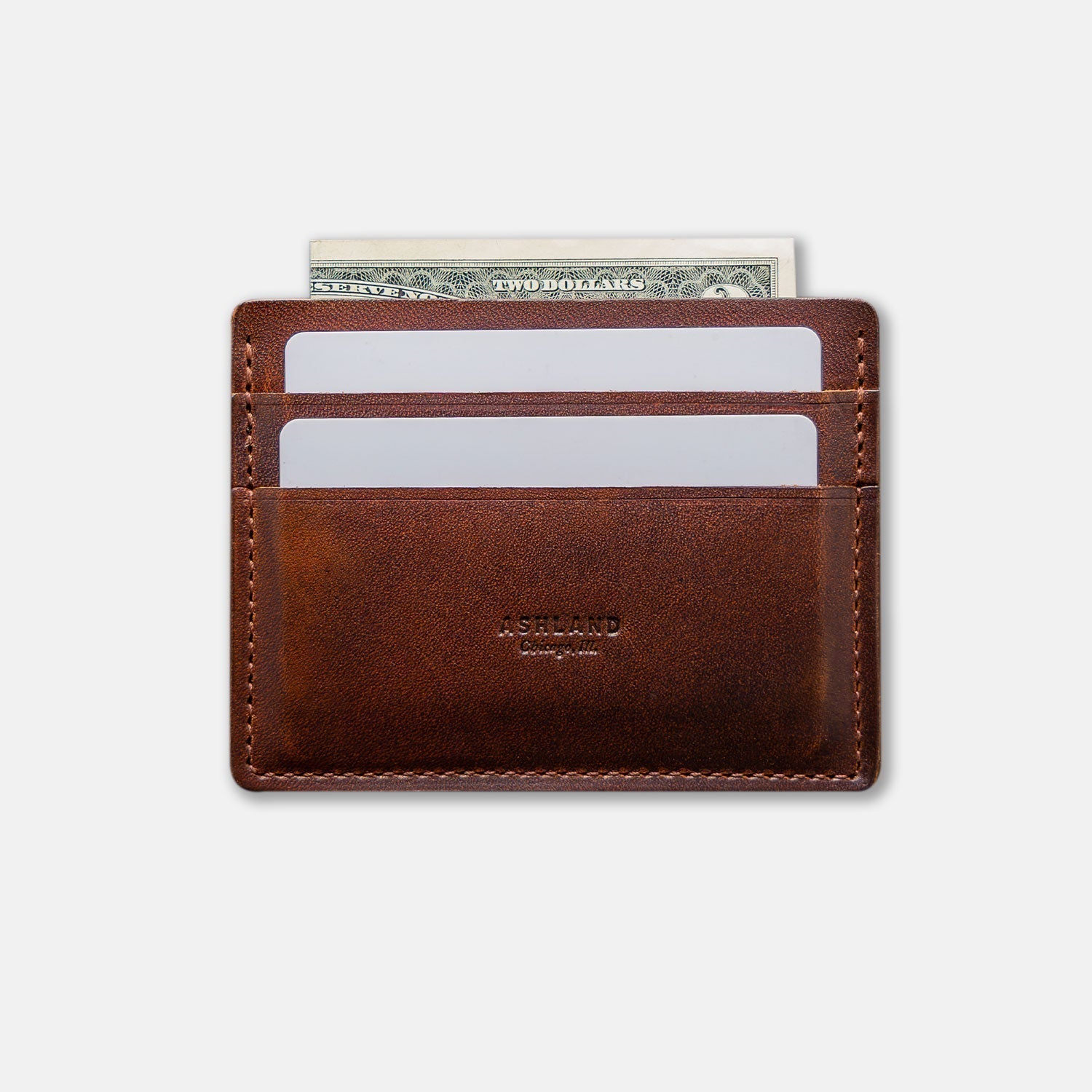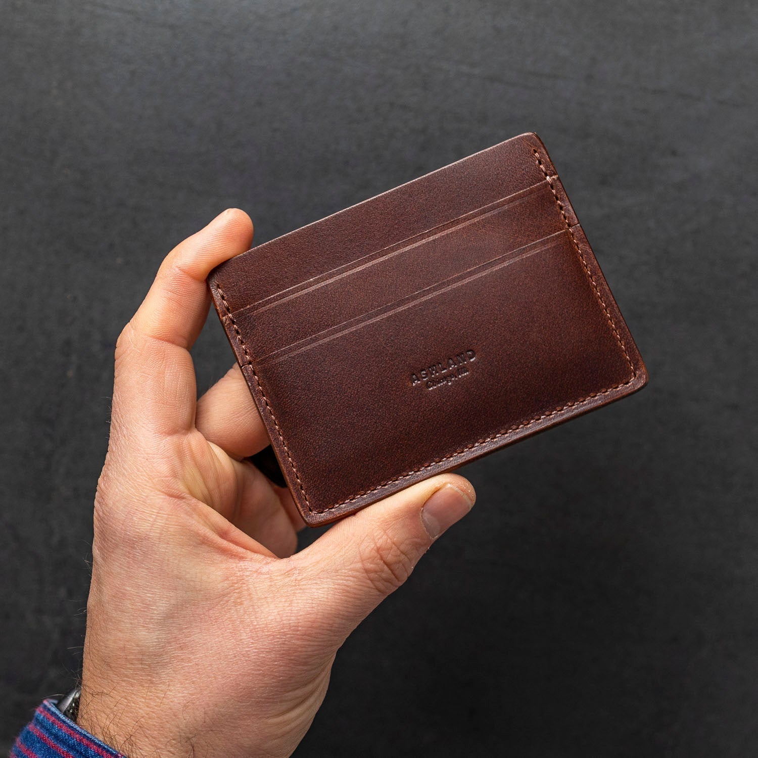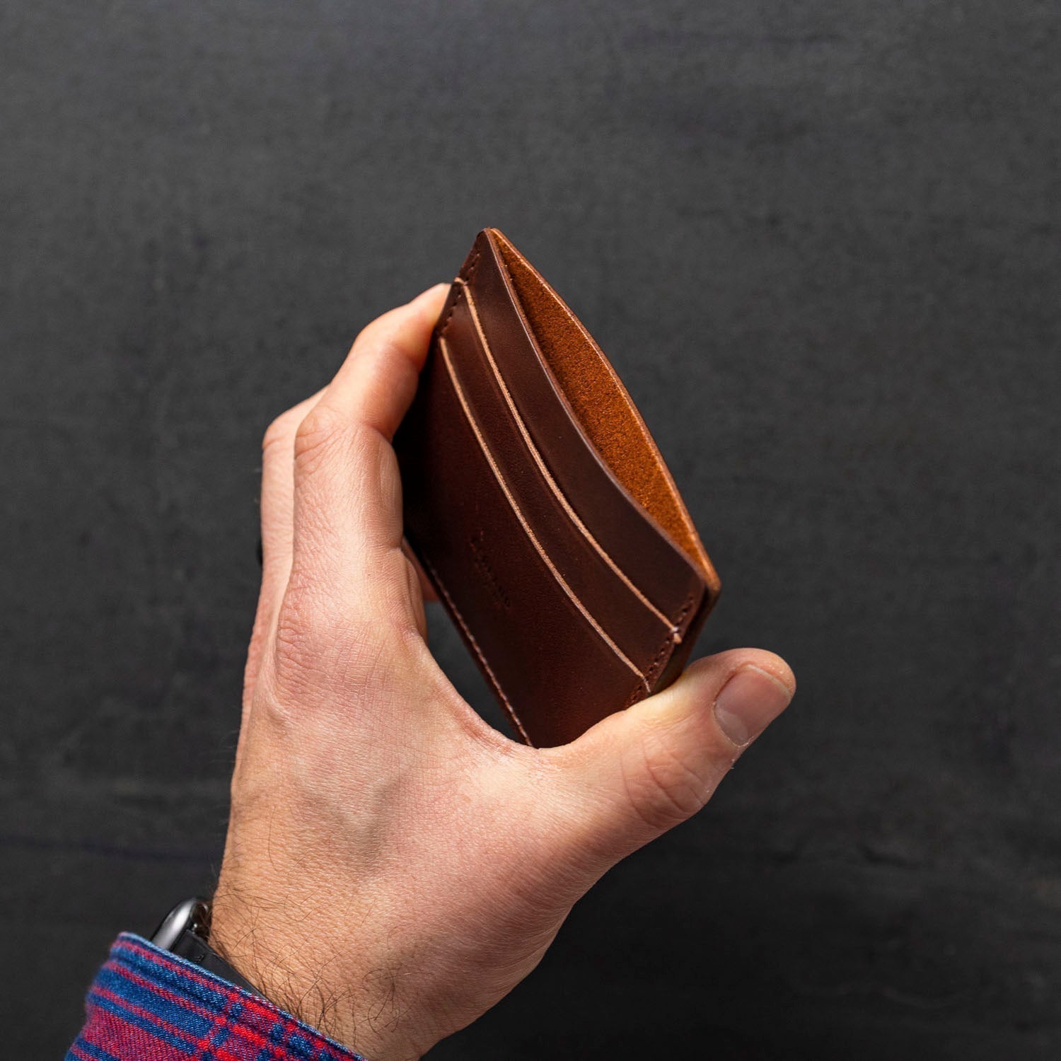 The ultimate minimalist leather card holder in a classic style. Handmade in Chicago from the finest Horween leather, Frank the Enforcer provides the muscle for your essential cards and even a few folded bills in the large, middle slot.