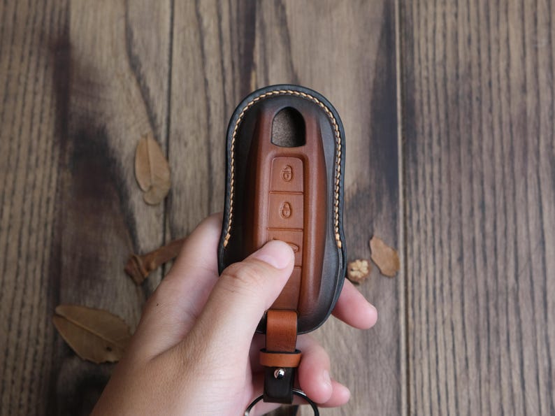 Protect your Porsche key in style with this handcrafted leather key fob cover. Made from leather, it provides excellent protection against scratches, drops, and everyday wear while giving your key a refined and luxurious look. Each cover is custom-made to order, ensuring a precise fit and premium craftsmanship. Durable and elegant, it also makes a thoughtful gift for your husband or any Porsche enthusiast.
