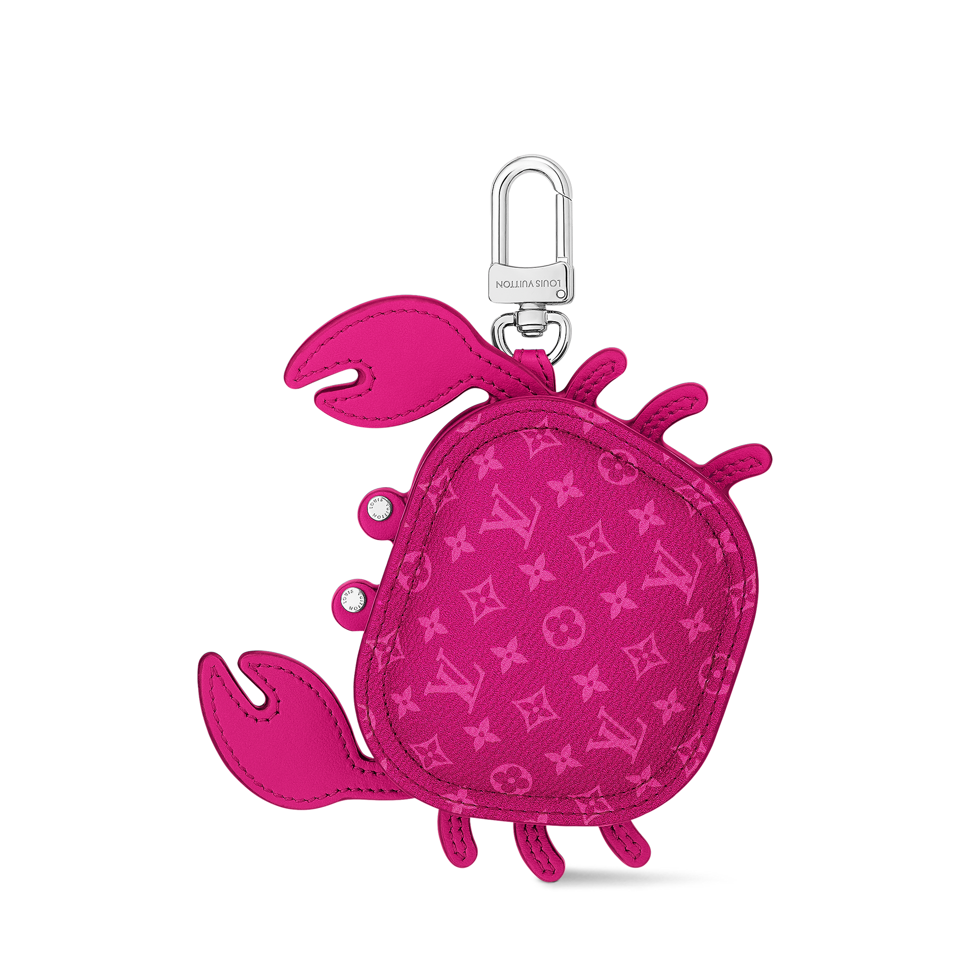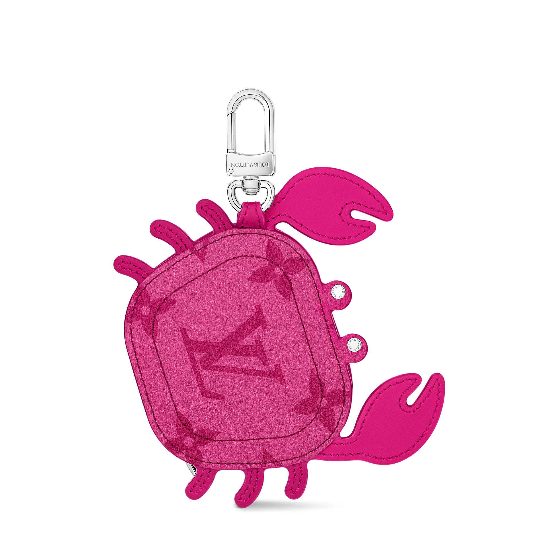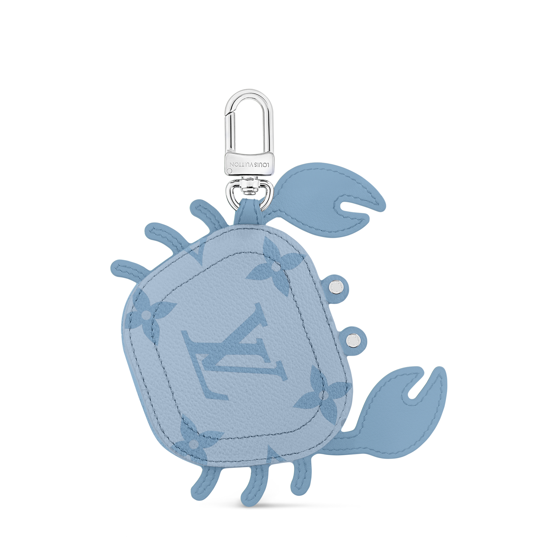 The Crab bag charm is a delightful gift that also doubles as an earphones case. Covered in a lighter-toned Monogram canvas, the accessory features leather claws and silver-toned studded eyes. As functional as it is charming, it clasps on to any bag strap, belt loop, or keychain.