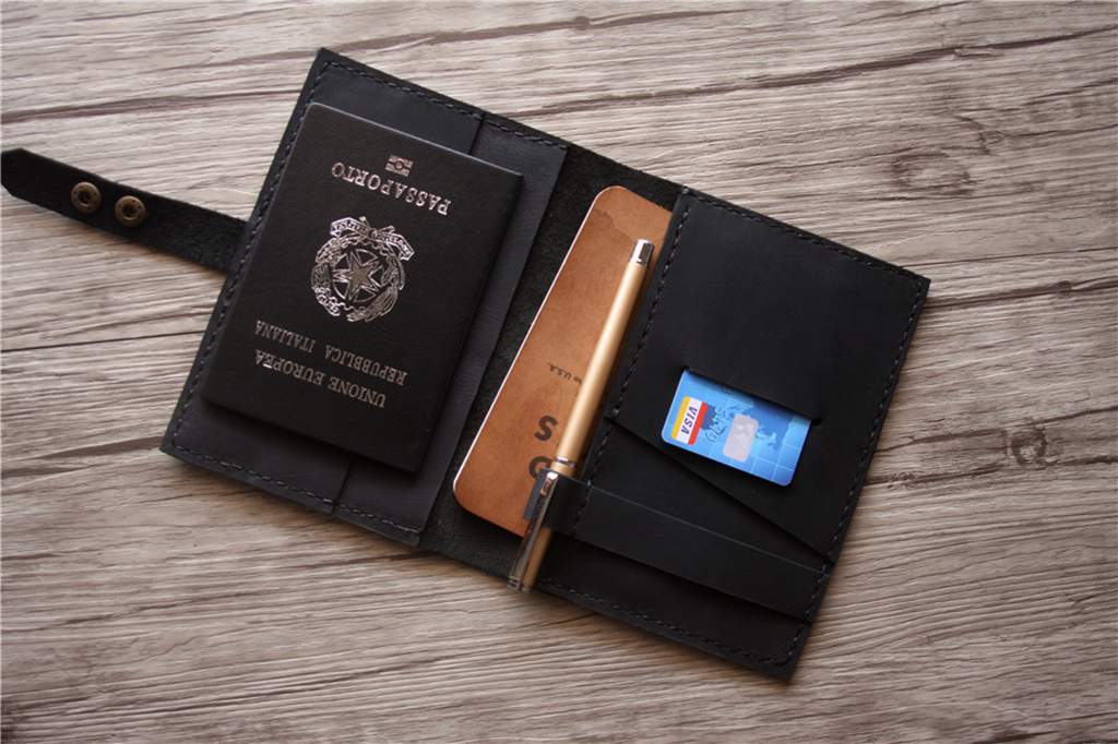Handcrafted from full-grain distressed leather, the custom leather passport holder is made to inspire your next travel. Designed for practical style, each has large pockets for your passport and two smaller pockets for cards and cash. A LeatherNeo personalized passport case is not an accessory of the season, but a companion for life. All the material is genuine buffalo leather that will make it truly beautiful and unique -- the marks from your life and experiences that tell your personal story.