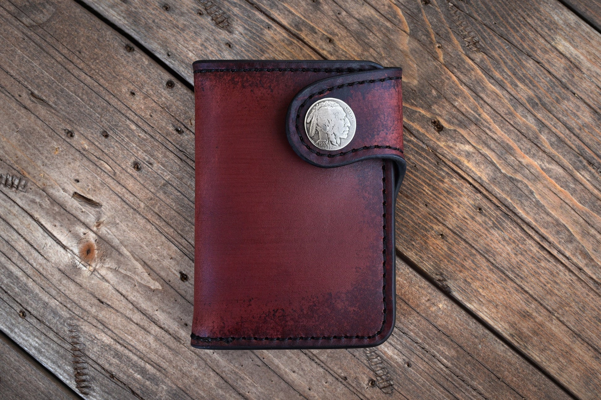 THE GALWAY: Vertical Snap Wallet - Buffalo Nickel Concho