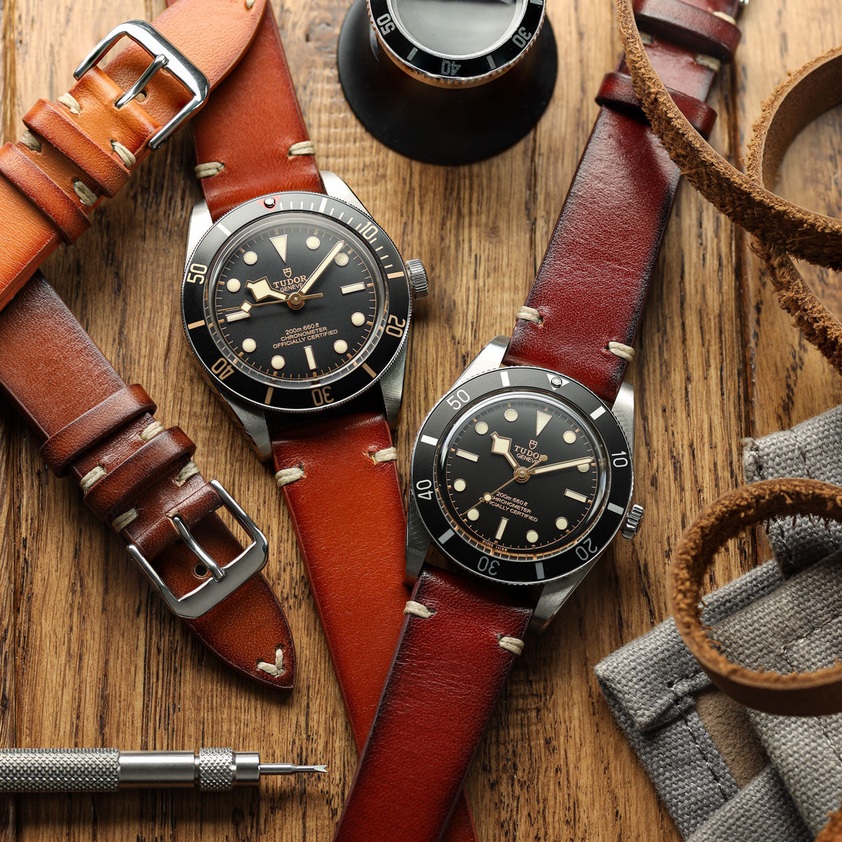 Our OAK leather straps are crafted from premium, fully vegetable-tanned leather—completely natural and renowned for its remarkable ability to shape and absorb colour. The meticulous hand-painting process involves applying layer upon layer of dye to create a stunning, one-of-a-kind two-tone effect. No two straps are ever exactly alike, making each piece truly unique.