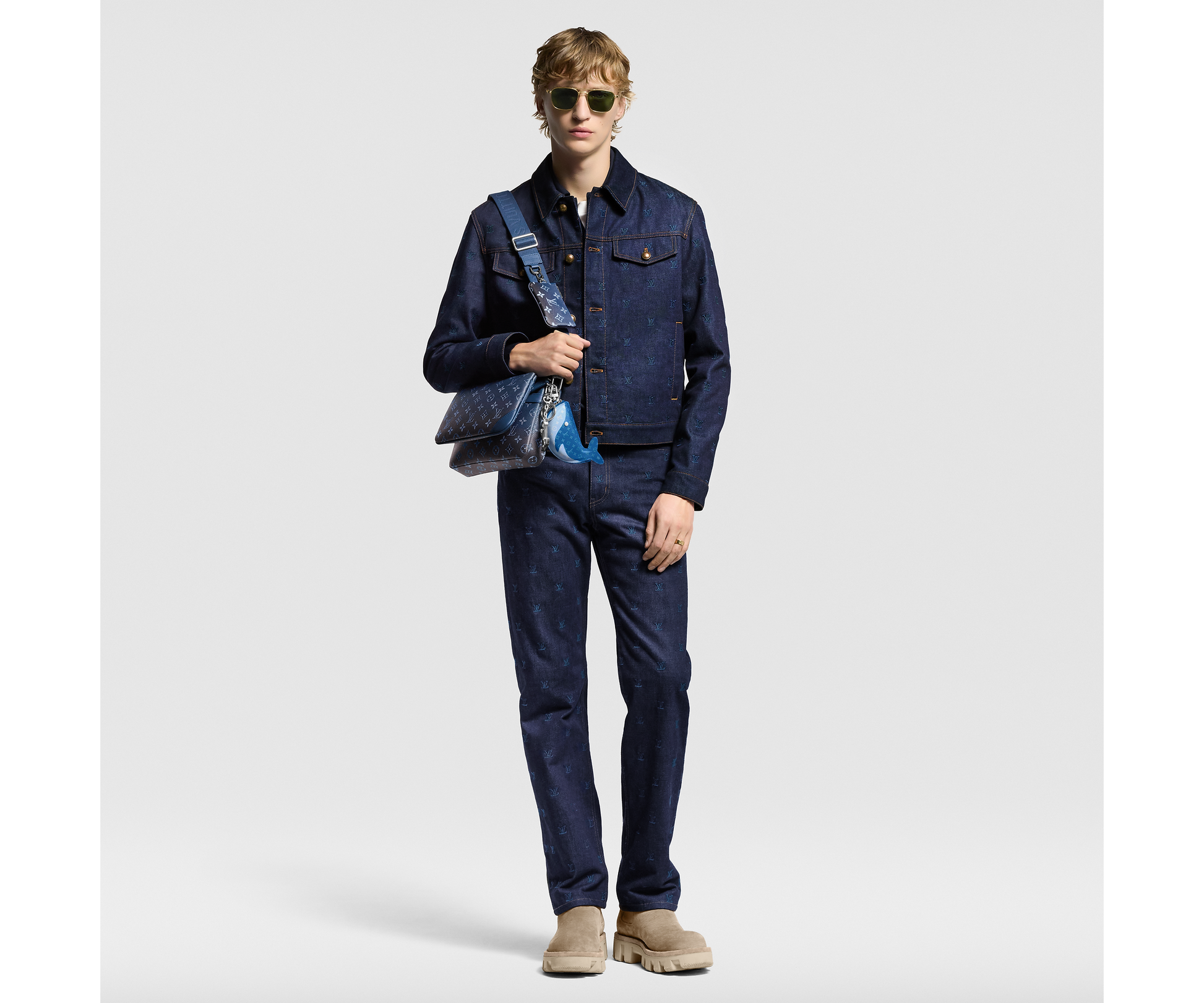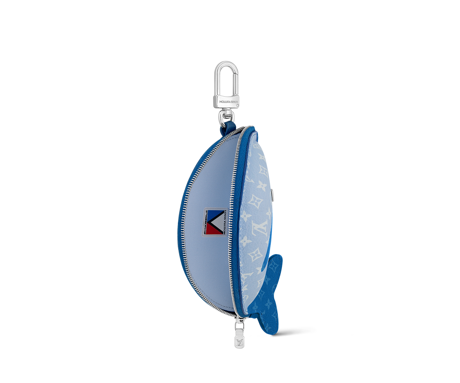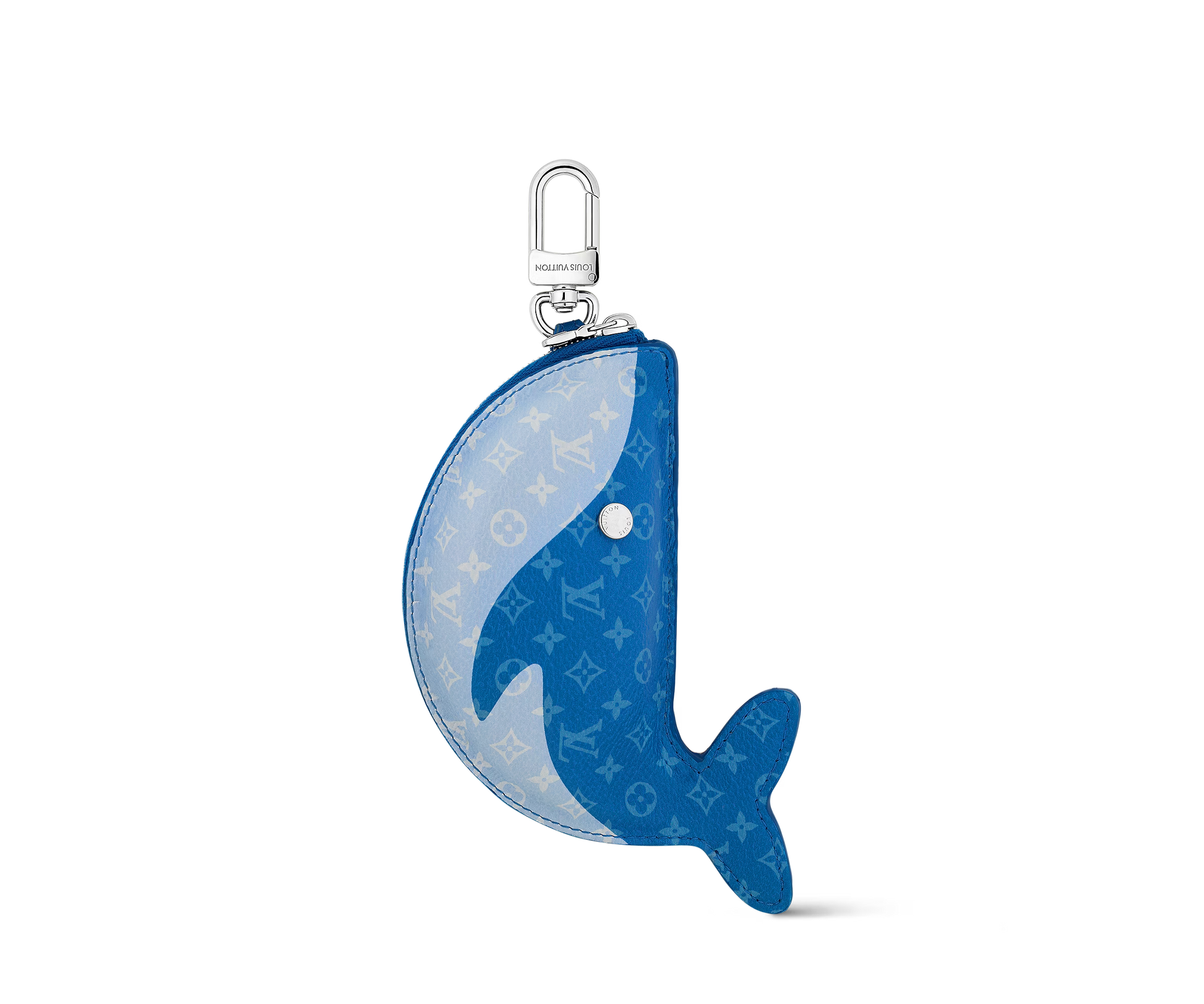 Crafted in the shape of a whale, this playful pouch charm is made from Monogram canvas with leather accents and detailed with Monogram Flower eyes. It features a zip closure and gold-tone hardware, serving as both a fun charm and a small pouch.